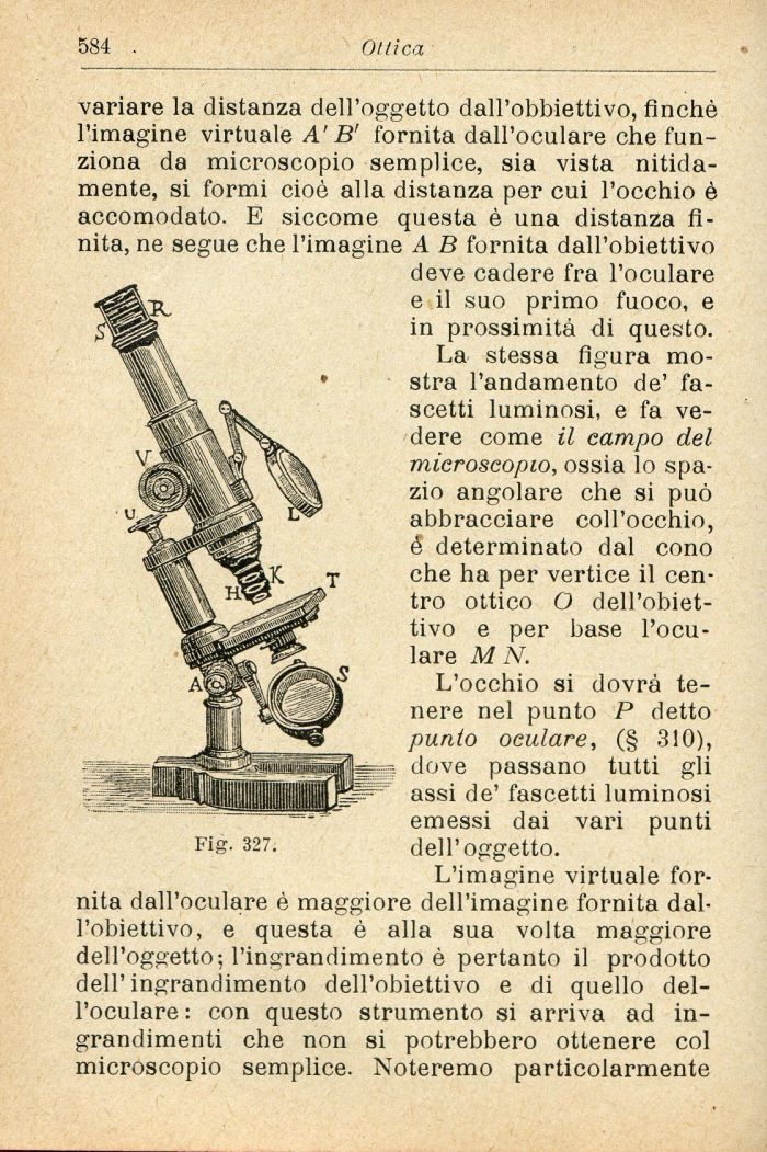 variare la distanza dell'oggetto dall'obbiettivo, finché l'imagine virtuale A' B' fornita dall'oculare che funziona da microscopio semplice, sia vista nitidamente, si formi cioè alla distanza per cui l'occhio è accomodato. E siccome questa è una distanza finita, ne segue che l'imagine A B fornita dall'obiettivo