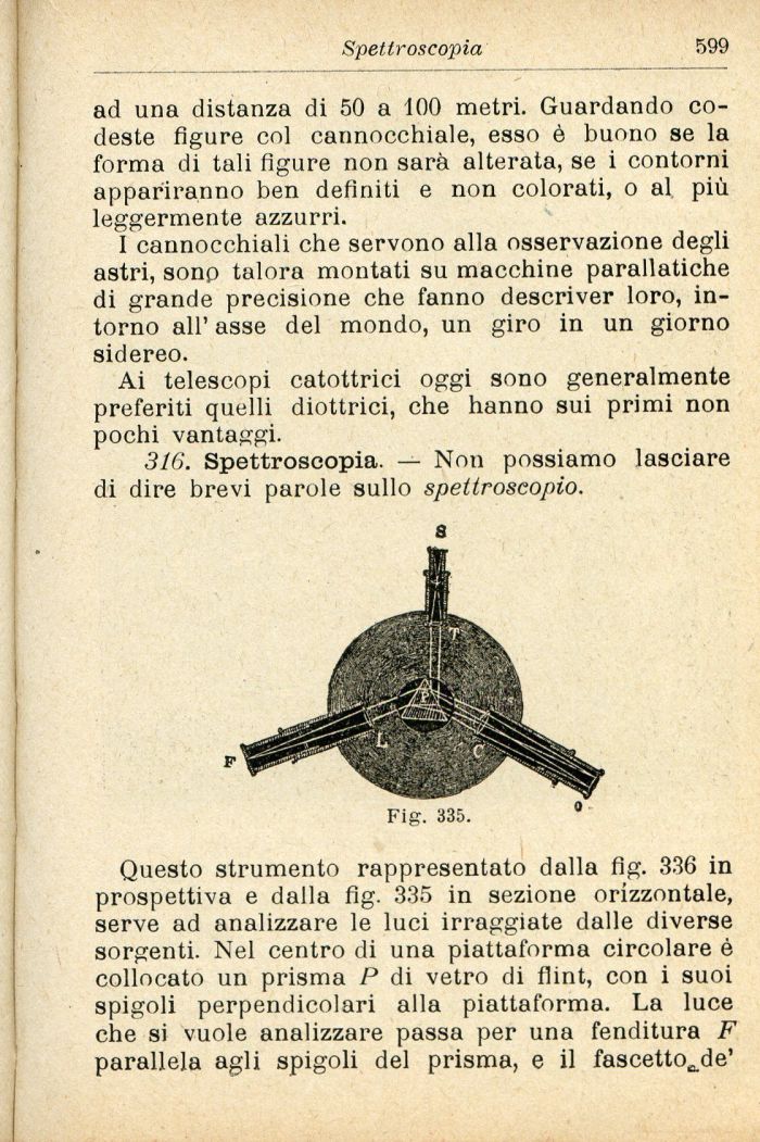 316. Spettroscopia. — Non possiamo lasciare di dire brevi parole sullo spettroscopio.