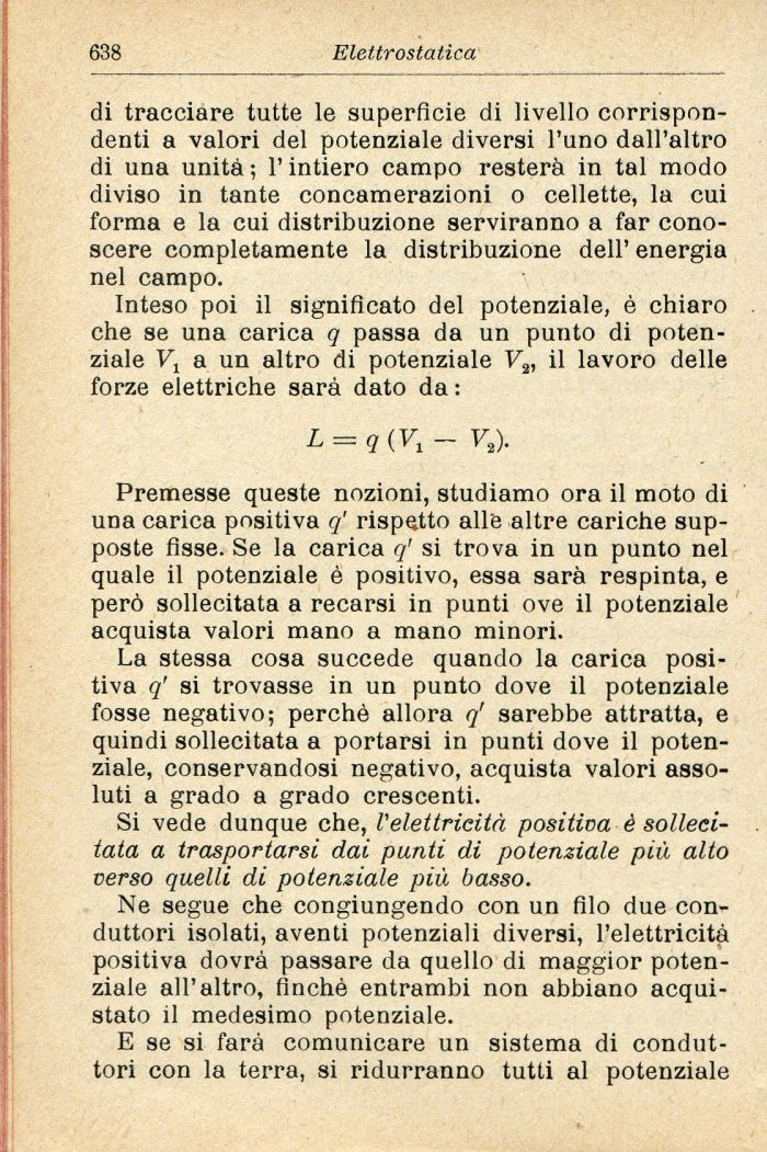 Si vede dunque che, l'elettricità positiva è sollecitata a trasportarsi dai punti di potenziale più alto verso quelli di potenziale più basso.
