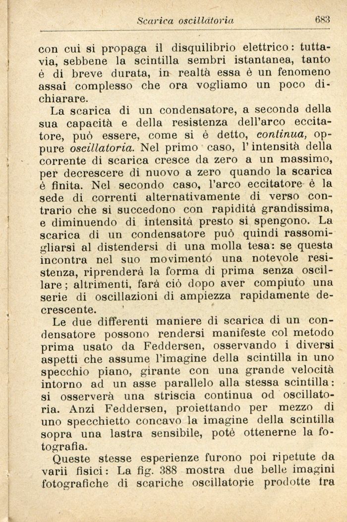 Queste stesse esperienze furono poi ripetute da varii fisici : La fig. 388 mostra due belle imagini fotografiche di scariche oscillatorie prodotte tra