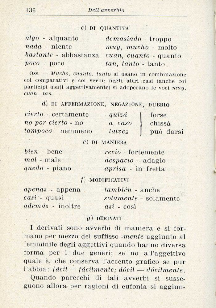 Oss. — Mucho, cuanto, tanto si usano in combinazione coi comparativi e coi verbi; negli altri casi (anche coi participi usati aggettivamente) si adoperano le voci muy, cuan, tan.