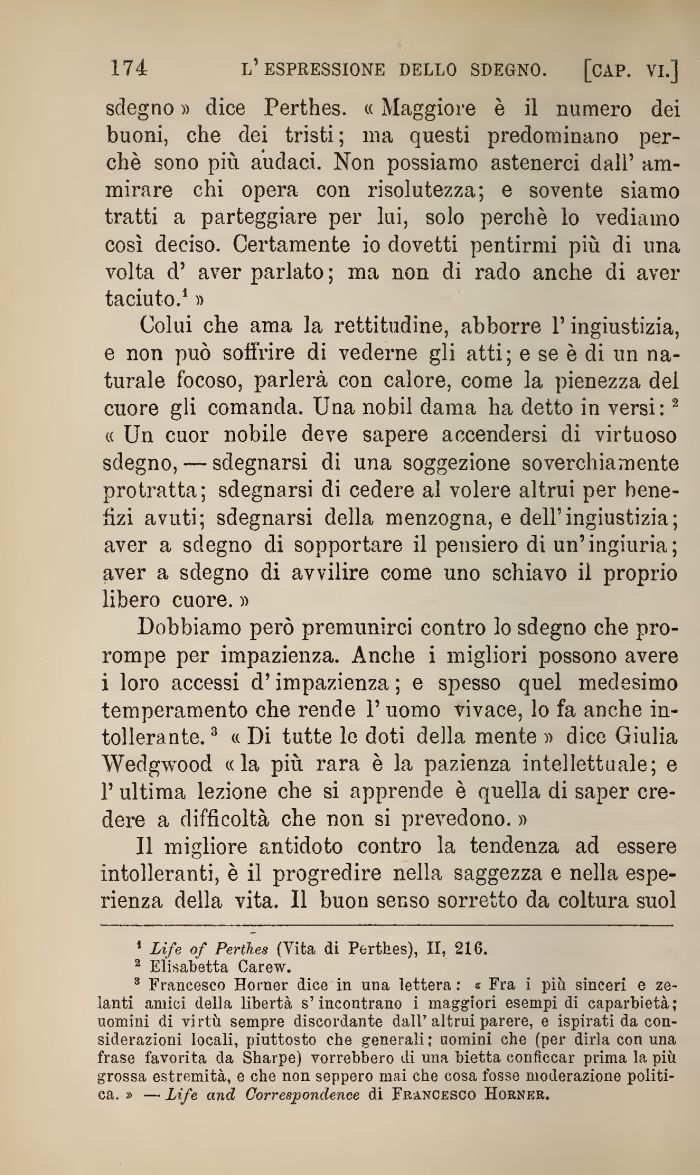 Dobbiamo però premunirci contro lo sdegno che prorompe per impazienza. Anche i migliori possono avere i loro accessi d'impazienza ; e spesso quel medesimo temperamento che rende l'uomo vivace, lo fa anche intollerante.3 « Di tutte le doti della mente » dice Giulia Wedgvvood «la più rara è la pazienza intellettuale; e P ultima lezione che si apprende è quella di saper credere a difficoltà che non s> prevedono. »