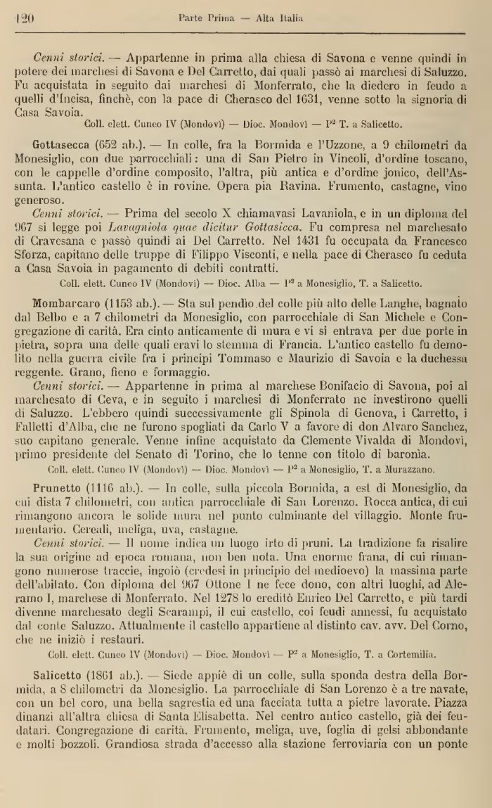 Coli, elett. Cuneo IV (Mondovì) — Dioc. Alba — l'2 a Monesiglio, T. a Salieetto.