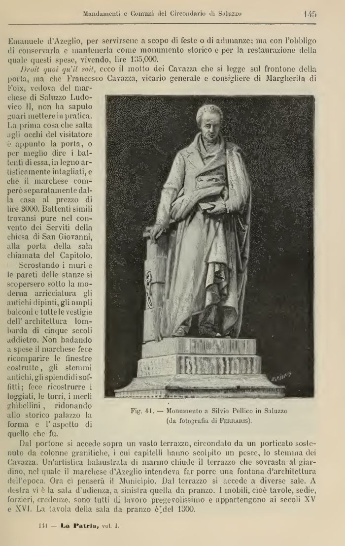 Fig. 41, — Monumento a Silvio Pellico in Saluzzo (da fotografia di FERRARIS).