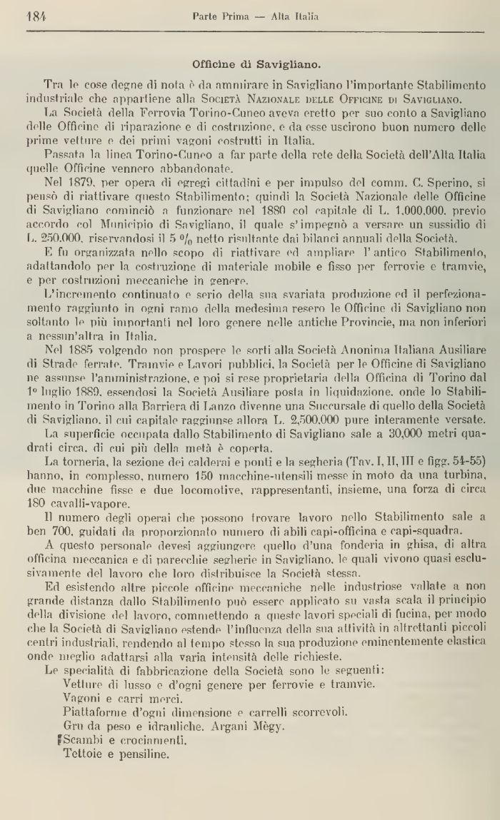 A questo personale de vosi aggiungerà quello d'una fonderia in ghisa, di altra officina meccanica e di parecchie segherie in Savigliano. le quali vivono quasi esclusivamente del lavoro che loro distribuisce la Società stessa.