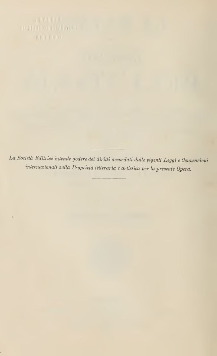 La Società Editrice intende godere dei diritti accordati dalle ingenti Leggi e Convenzioni internazionali sulla Proprietà letteraria e artistica per la presente Opera.