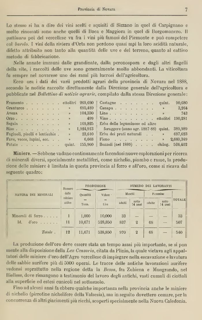 Ecco ora i dati dei varii prodotti agrori della provincia di Novara nel 1888, secondo le notizie raccolte direttamente dalla Direzione generale dell'agricoltura e pubblicate nel Bollettino di notizie agrarie, compilato dalla stessa Direzione generale: