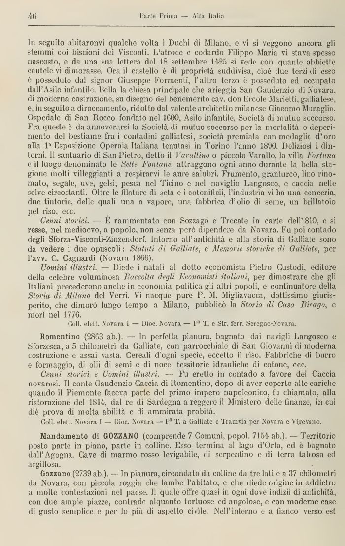 Uomini illustri. — Diede 1 natali al dotto economista Pietro Custodi, editore della celebre voluminosa lìaccolta degli. Economisti italiani, per dimostrare che gli Italiani precederono anche in economia politica gli altri popoli, e continuatore della Storia di Milano del Verri. Vi nacque pure P. M. Migliavacca, dottissimo giurisperito, che dimorò lungo tempo a Milano, pubblicò la Storia di Casa Birago, e mori nel 1776.