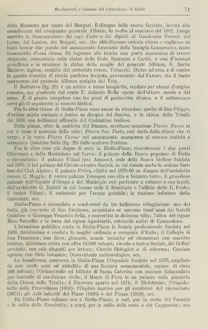 Delle piazze, oltre la suddetta del Duomo, meritano menzione Piazza Nuova ni cui si tiene il mercato delle erbe; Piazza San Paolo, così detta dalla chiesa che vi sorge; e la vasta Piazza Cavour col monumento marmoreo al sommo statista e scienziato Quintino Sella (fig, 28) dello scultore Bertone.