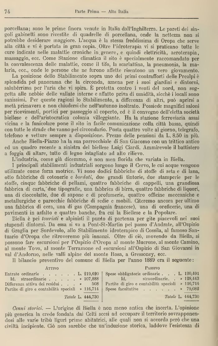 II bilancio preventivo del comune di Biella per l'anno 1889 era il seguente: