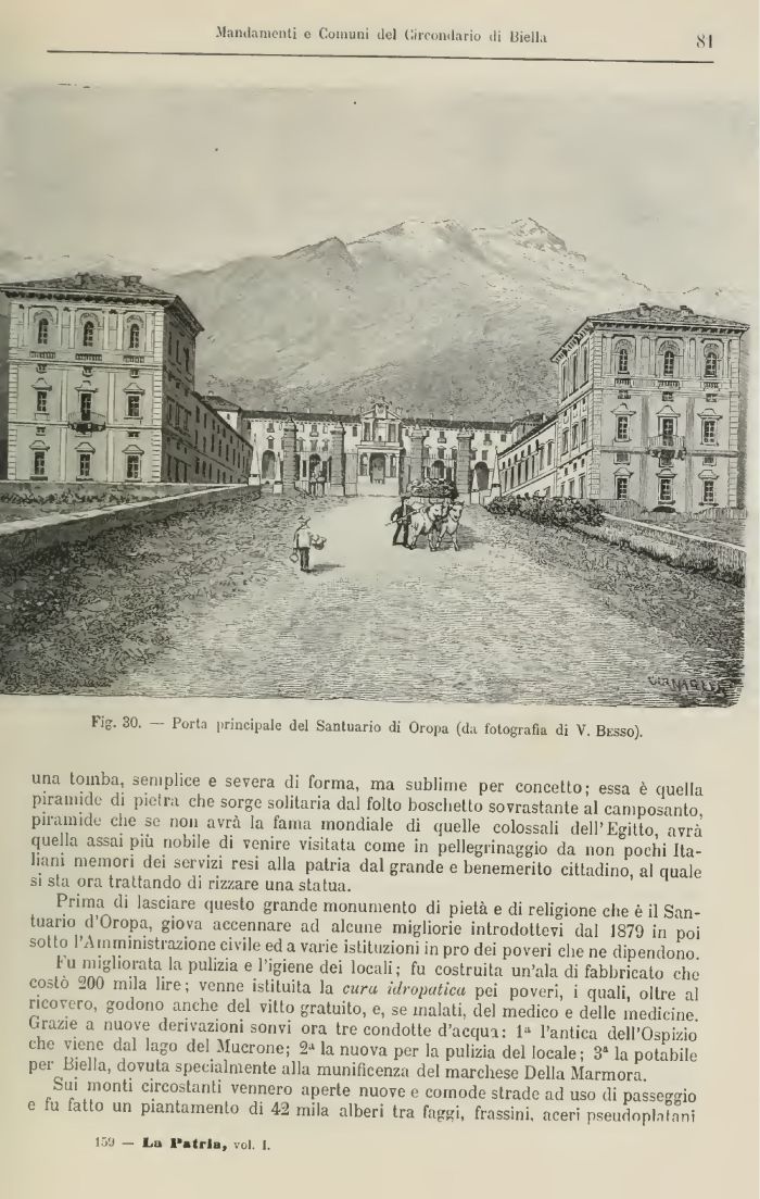 Prima di lasciare questo grande monumento di pietà e di religione che è il Santuario d'Oropa, giova accennare ad alcune migliorie introdottevi dal 1879 in poi sotto l'Amministrazione civile ed a varie istituzioni in prò dei poveri che ne dipendono.