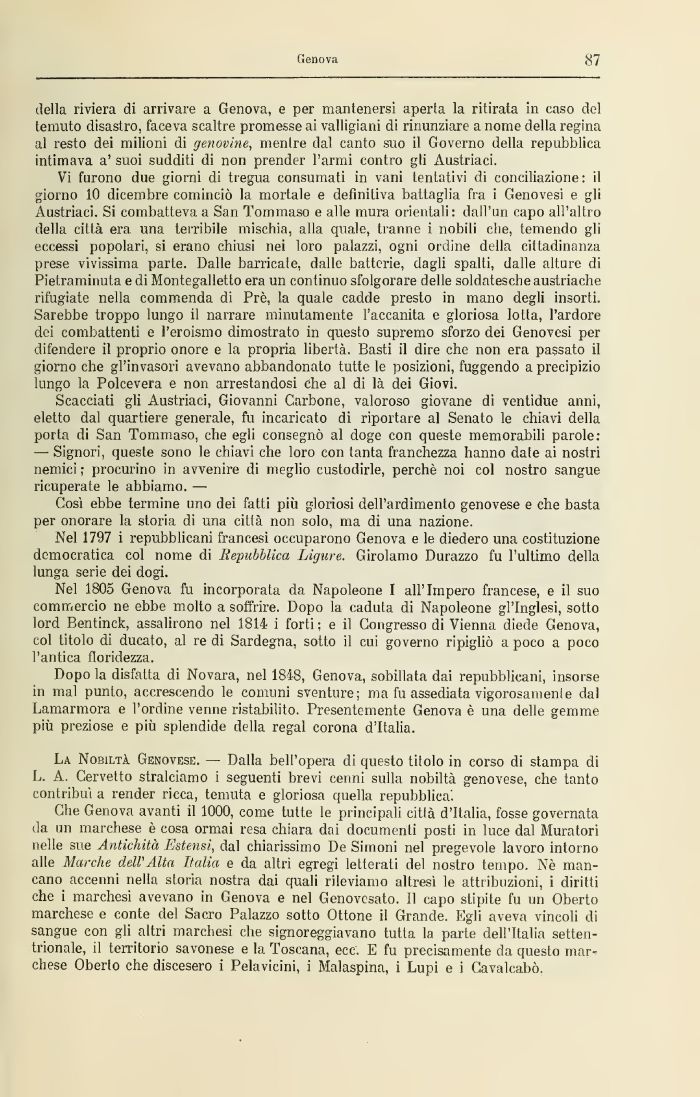 La Nobiltà Genovese. — Dalla bell'opera di questo titolo in corso di stampa di L. A. Cervetto stralciamo i seguenti brevi cenni sulla nobiltà genovese