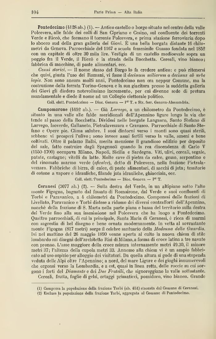 (1) Compresa la popolazione della frazione Torbi (ab. 451) staccata dal Comune di Ceranesi.