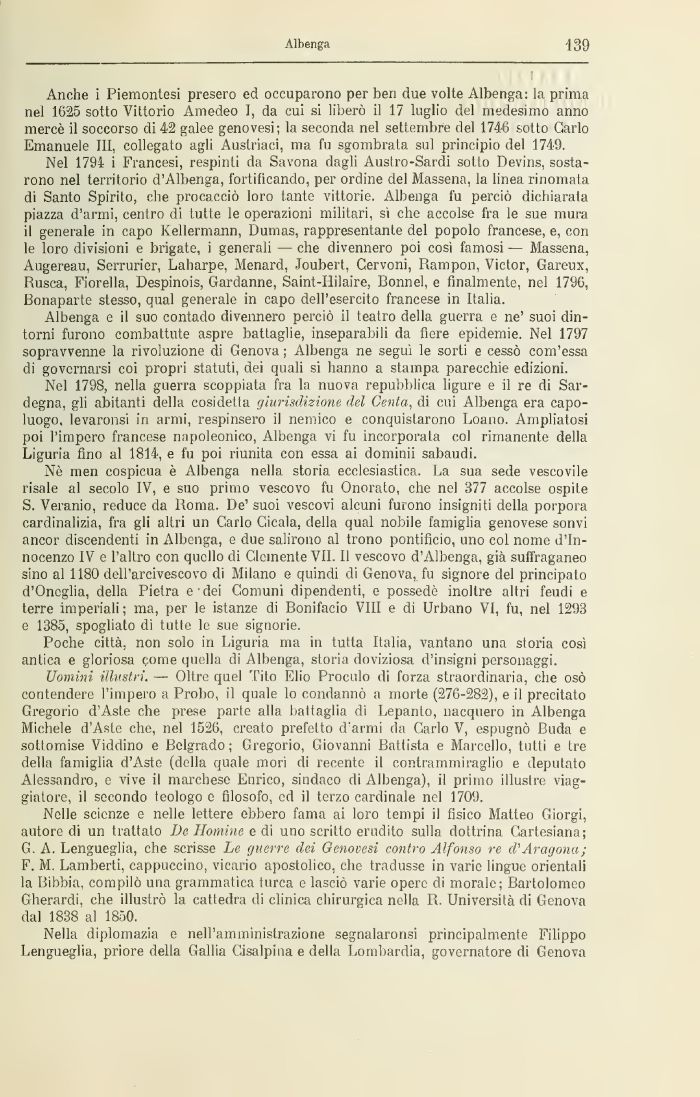 Albenga vi fu incorporata col rimanente della Liguria lino al 1814