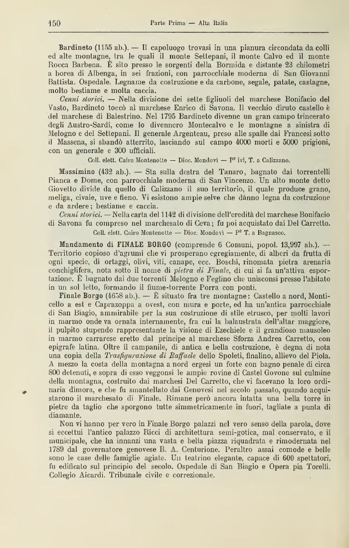 Bardineto (1155 ab.). — Il capoluogo trovasi in una pianura circondata da colli ed alte montagne