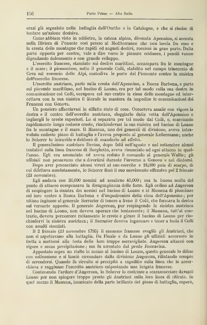 che non si aspettavano alla battaglia. Da Finale e da Loano gli ufliziali accorsero in fretta a mettersi alla testa delle loro truppe meravigliate. Augereau attaccò con vigore e senza precipitazione ; ma fu arrestato dal prode Rocca vinti.