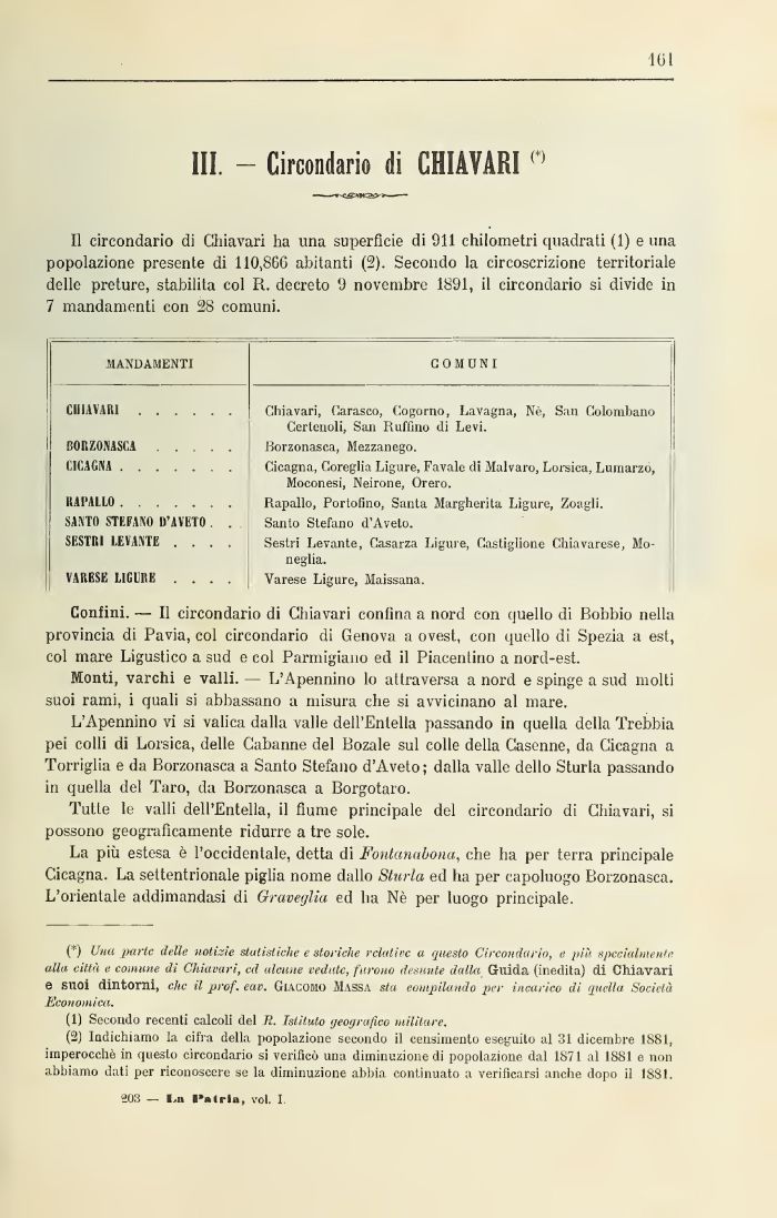 III. - Circondario di CHIAVARI n
