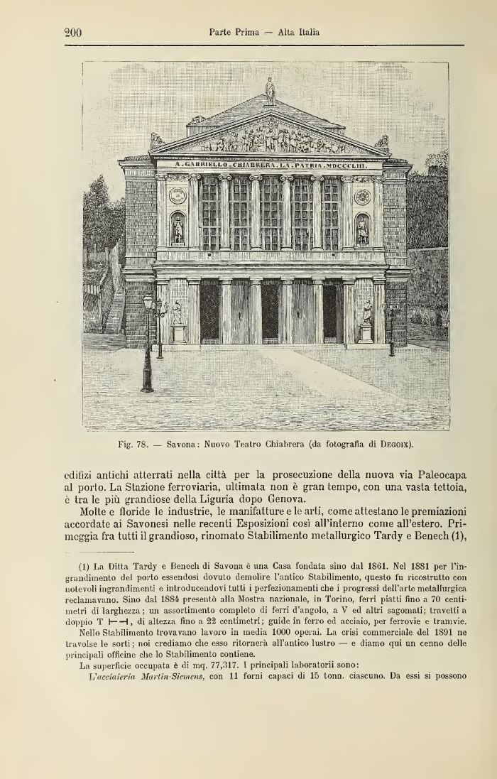 (1) La Ditta Tard.v e Ilenecli di Savona è una Casa fondata sino dal 1801. Nel ISSI per l'ingrandimento del porto essendosi dovuto demolire l'antico Stabilimento