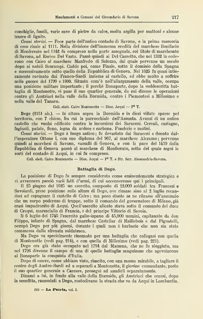 Ma Dego va specialmente rinomato per una battaglia che collegasi con quella di Montenotte (vedi pag. 214)