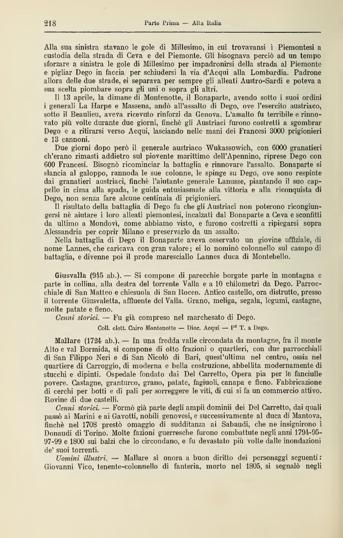 Uomini illustri. — Mallare si onora a buon diritto dei personaggi seguenti : Giovanni Vico