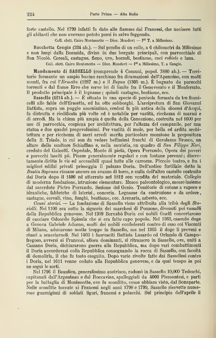 Mandamento di SASSELLO (comprende 4 Comuni
