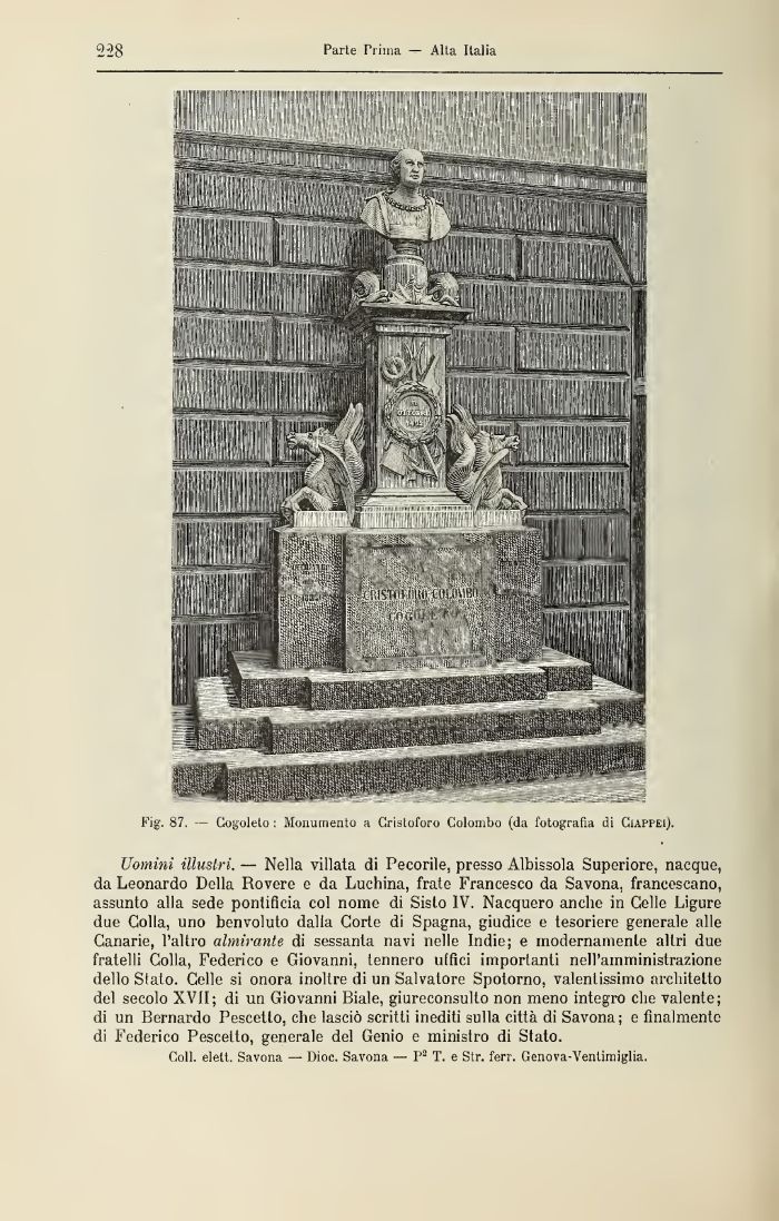 Fig'. 87. — Cogoleto : Monumento a Cristoforo Colombo (da fotografia di ClAl'PEi).
