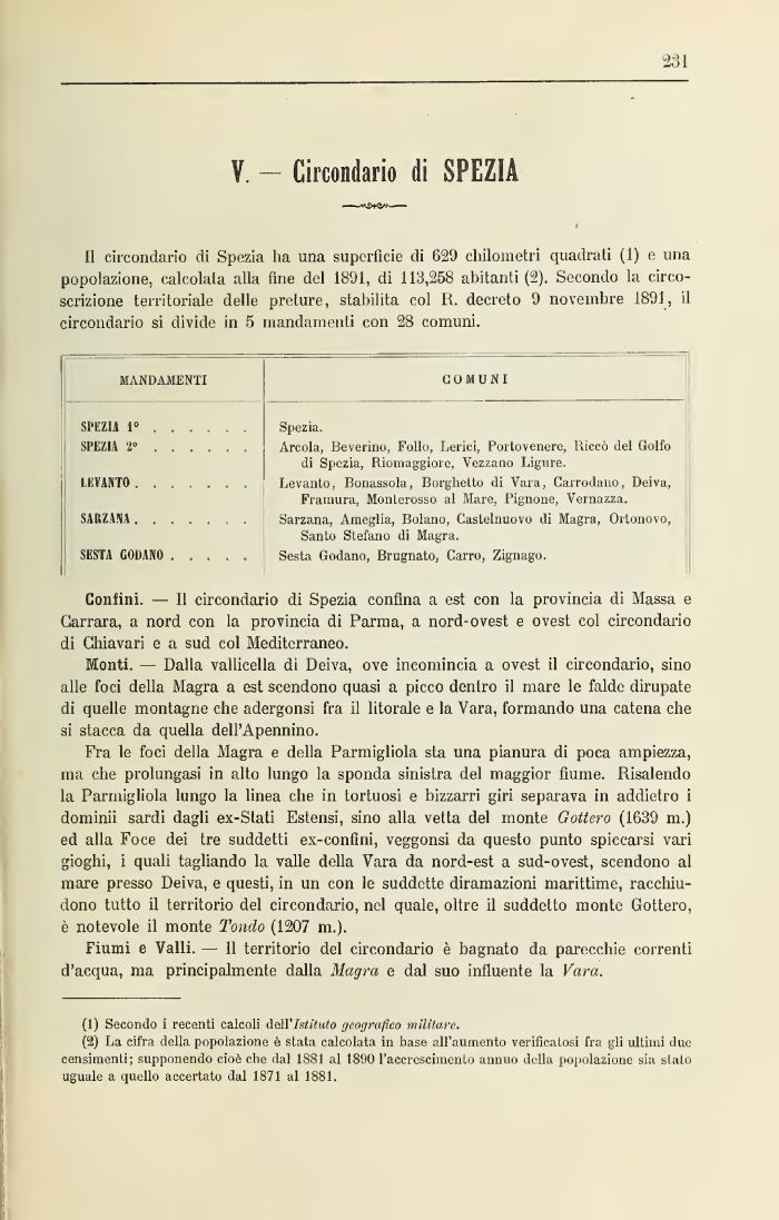 Il circondario di Spezia ha una superficie di 629 chilometri quadrali (1) e una popolazione