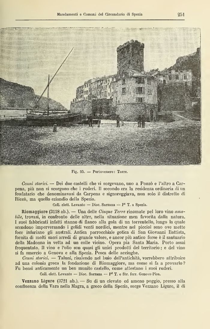 e ancor più antico forse è il santuario della Madonna in vetta ad un colle vicino. Opera pia Santa Maria. Porto assai frequentato. Il vino e l'olio son quasi gli unici prodotti del territorio ; e del vino si fa smercio a Genova e alla Spezia. Pesca delle acciughe.