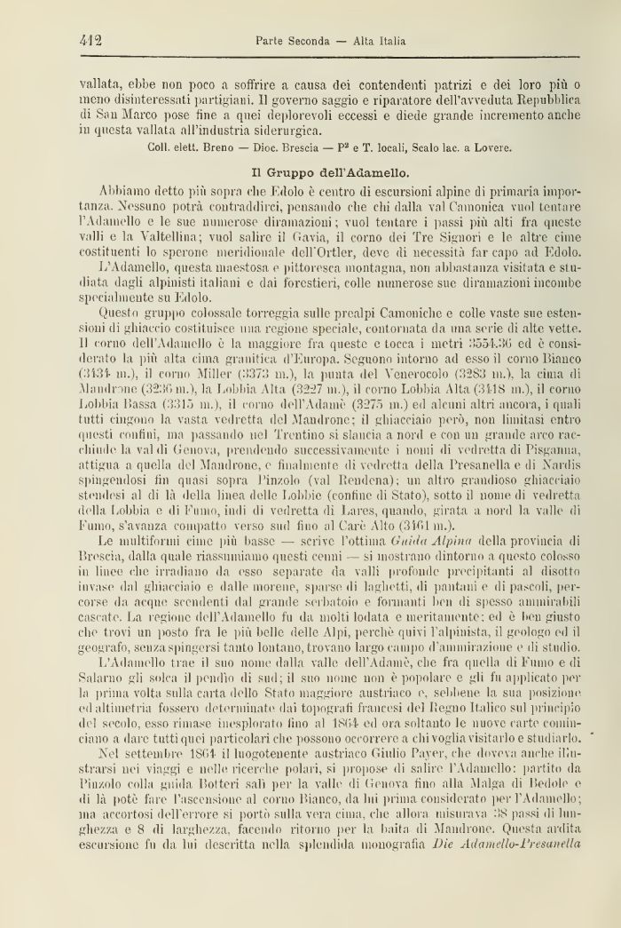 L'Adamello, questa maestosa e pittoresca montagna, non abbastanza visitata e studiata dagli alpinisti italiani e dai forestieri, colle numerose sue diramazioni incombe specialmente su Edolo.