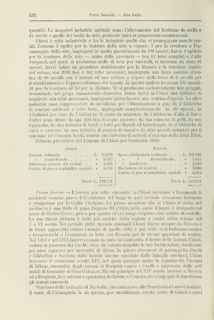 Bilancio preventivo del Comune di Chiari per l'esercizio 1895:
