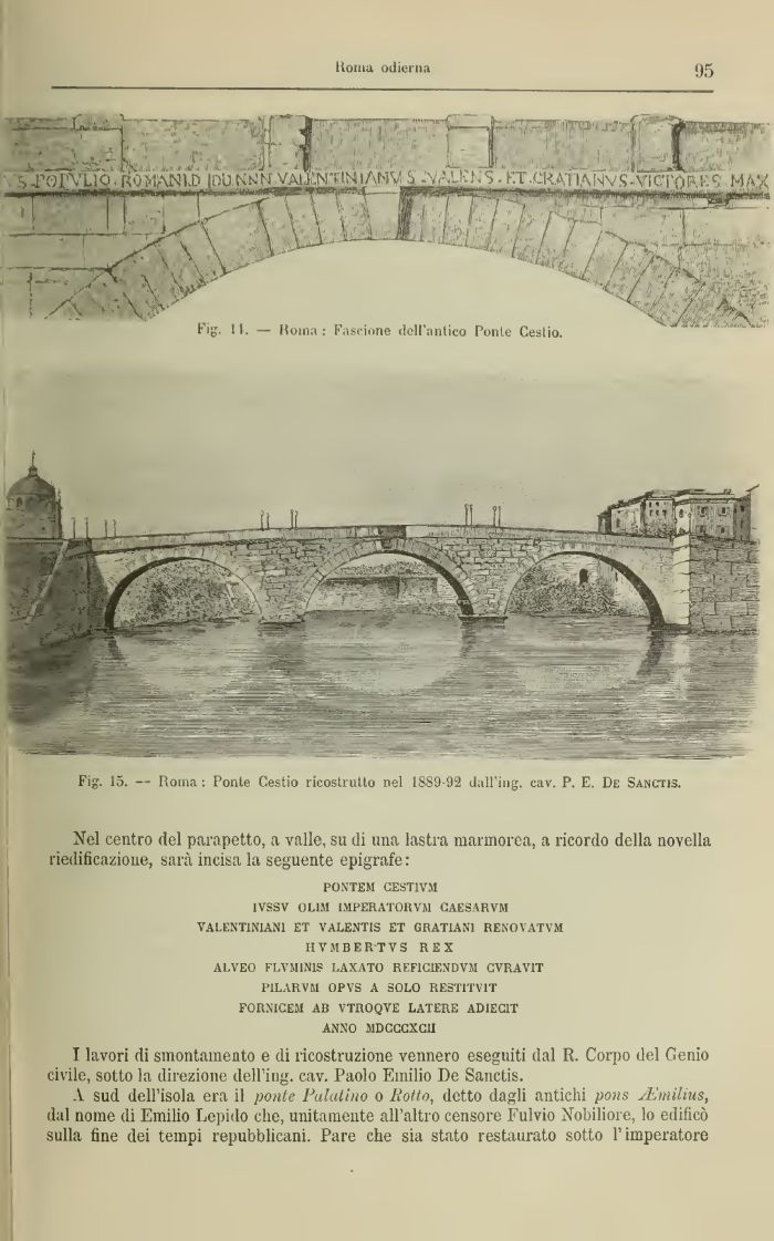1VSSV OL1M IMPERATORVM CAESARVM VALENT1N1AN1 ET VALENTIN ET GUATI A M RENOVATVM HVMBERTVS R E X ALVEO FLVM1N1S I.AXATO REF1C1ENDVM CVRAV1T l'ILARVM OPVS A SOLO RESTITV1T FORN1CEJ1 AB VTROQVE LATERE ADIEC1T ANSO 51DCCCXCU