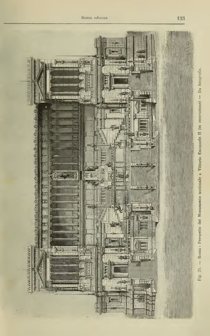 Fig. 35. — Roma : Prospetto ilei Monumento nazionale a Vittorio Emanuele II (in costruzione) — Da fotografia.