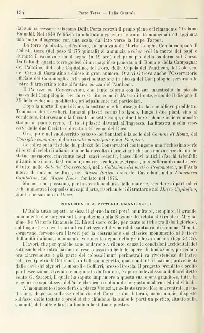 L'Italia tutta aspetta ansiosa il giorno in cui potrà ammirarsi, compiuto, il grande monumento che sorgerà sul Campidoglio, dalla Nazione decretato al Grande e Magnanimo Ite Vittorio Emanuele li. Là sul sacro colle, per tante antiche ti adi/ioni glorioso, sul luogo stesso ove la primitiva fortezza ed il venerabile santuario di Giunone Moneta sorgevano, fervono ora i lavori per la costruzione dei classico monumento al Fattore dell unità italiana, monumento veramente degno della grandezza romana (figg. 31-35).