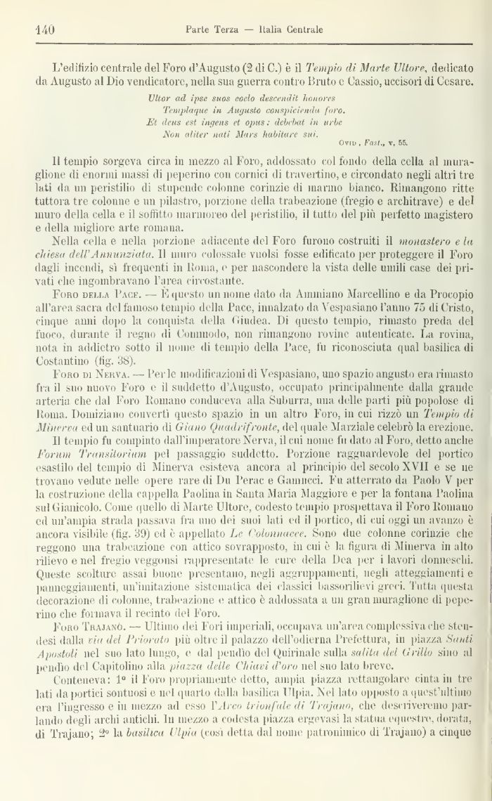 Foro deli,a PaéI» - E questo 1111 nome dato da Annidano Marcellino e da Procopio all'area sacra del famoso tempio della Pace, innalzato da Vespasiano l'anno 75 di Cristo, cinque anni dopo la conquista della Giudea. Di questo tempio, rimasto preda del fuoco, durante il regno di Cominodo, non rimangono rovine autenticate. La rovina, nota in addietro sotto il nome di tempio della Pace, fu riconosciuta qual basilica di Costantino (fig. 38).
