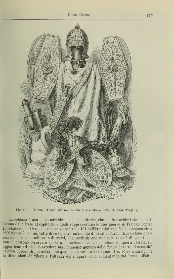 Fig. 40. — Roma : Trofeo d'armi romane (bassorilievo della Colonna Trajana).