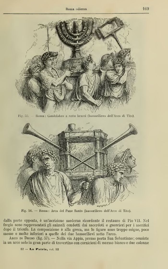 Fig. 5tì. — Kouia : Arca del Pane Santo (bassorilievo dell'Arco ili Tito).