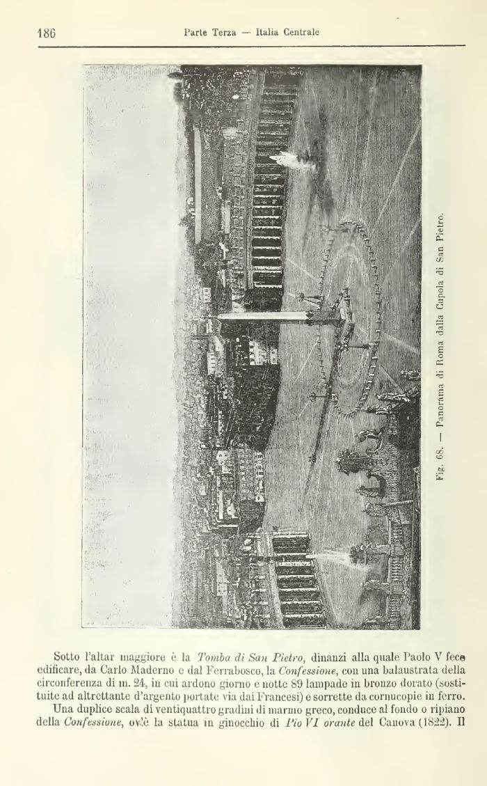 Una duplice scala di ventiquattro gradini di marmo greco, conduce al fondo o ripiano della Confessione, ov.'.è la statua in ginocchio di Pio VI orante del Canova (1822). 11