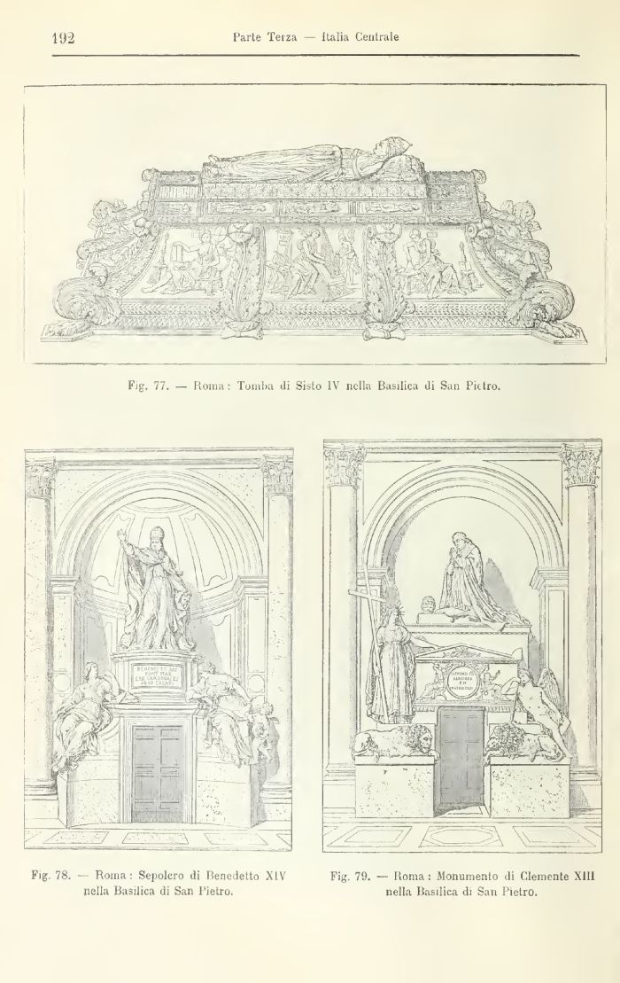 •110 Parte Terza — Italia Centrale Fig. 78. — Roma: Sepolcro di Benedetto XIV nella Baślica di San l'ietro. Fig. 79. — Roma : Monumento di Clemente XIII nella Basilica di San Pietro.
