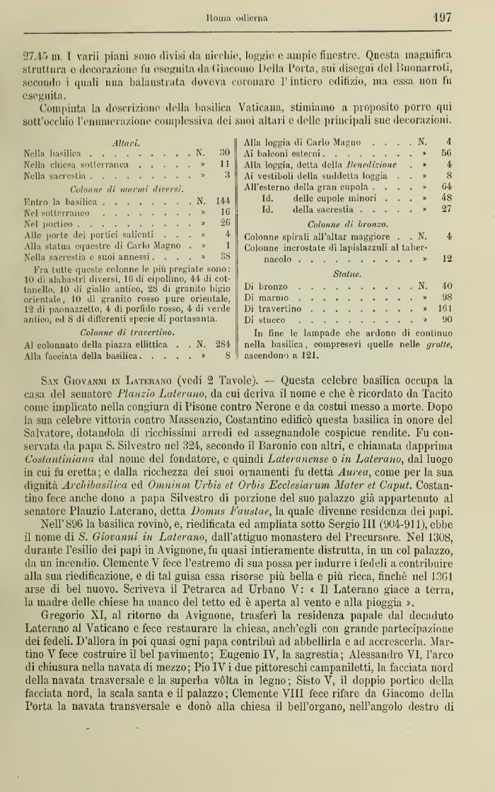 Compiuta la descrizione della basilica Vaticana, stimiamo a proposito porre qui sott'oechio 1 enumerazione complessiva dei suoi altari e delle principali sue decorazioni.