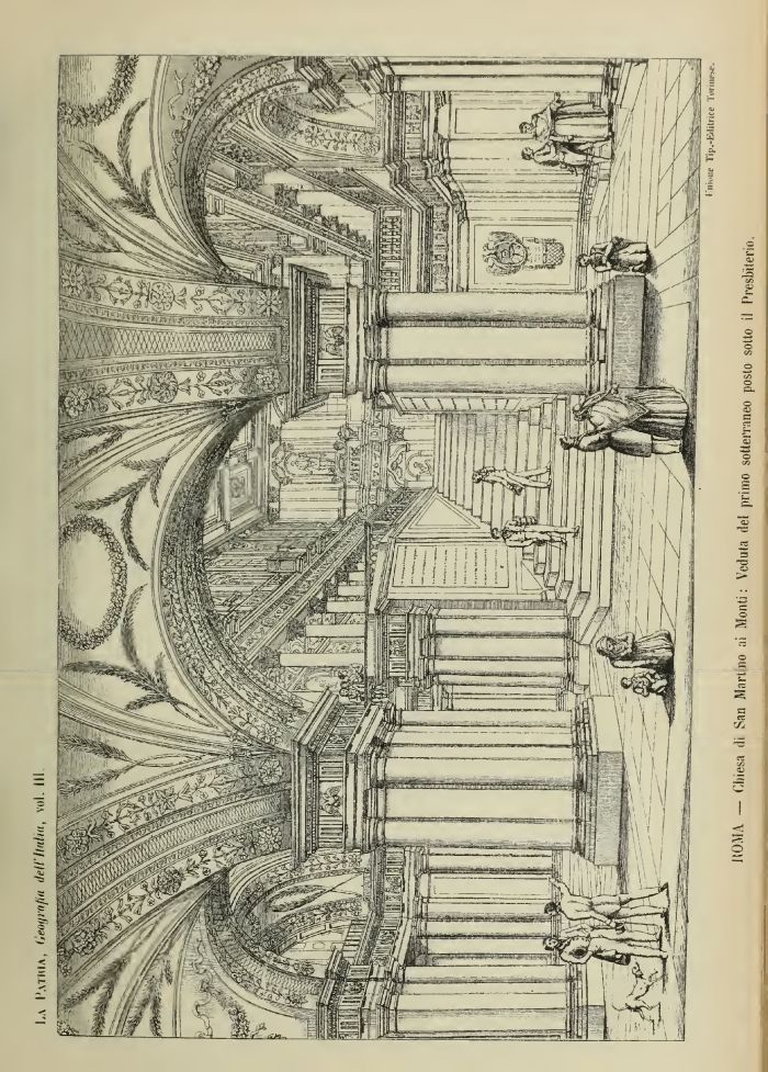 La I'athia, Geografia dell'Italia, voi. ili iK»tte tip.-Editrice Torinese. ItOMA — Chiesa ili San Martino ai Monti : Veduta ilei primo sotterraneo posto sotto il Presbiterio.