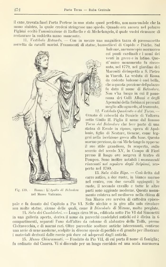 15. Museo Chiaramonti. — Fondato da Pio VII, di cui porta il nome di famiglia; fu ordinato dal Canova. Vi si discende per un lungo corridoio ed una scala marmorea