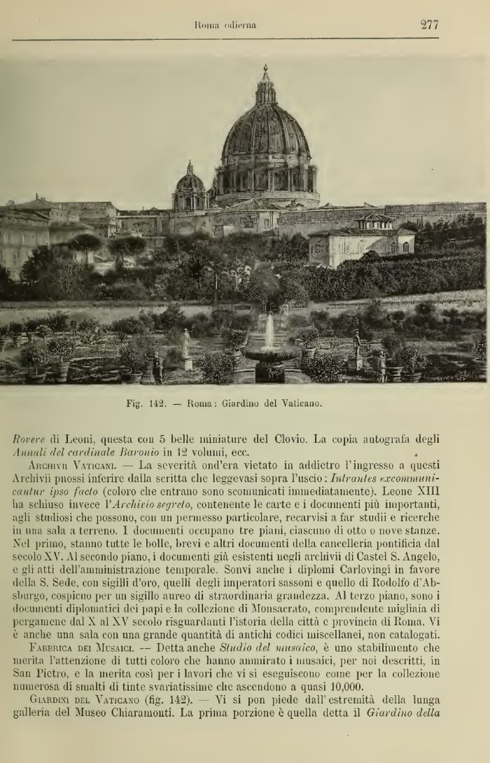 Giardini del Vaticano (fig. 142). — Vi si pon piede dall' estremità della lunga galleria del Museo Chiaramonti. La prima porzione è quella detta il Giardino della