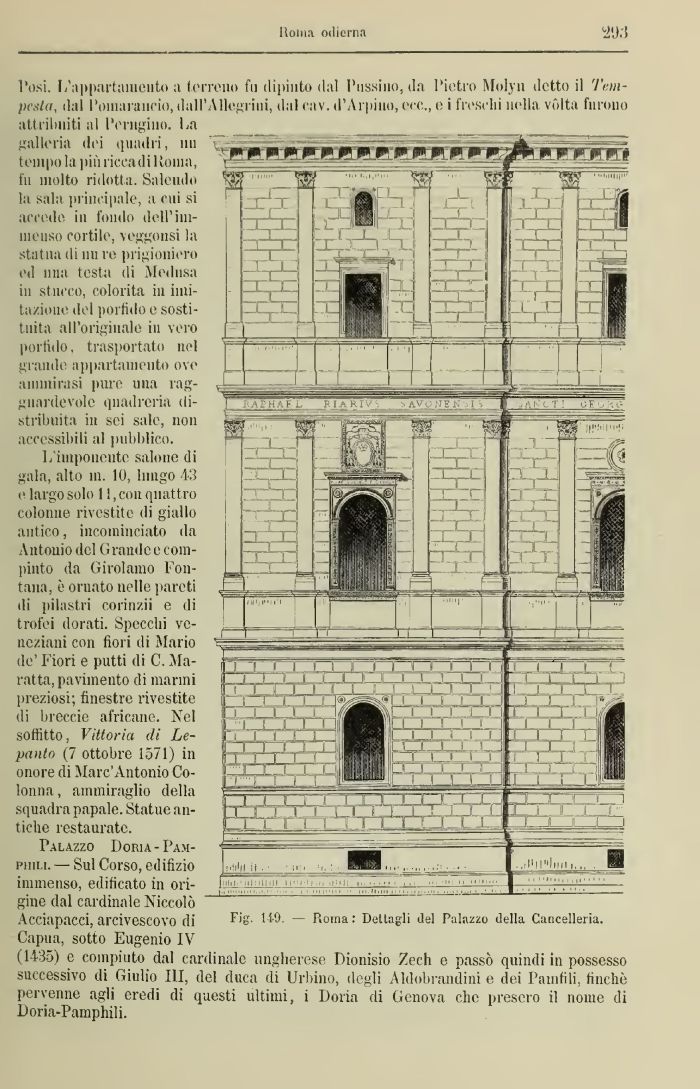 Palazzo Doni a - Pam-phii l — Sul Corso, edifizio immenso, edificato m origine dal cardinale Niccolò Acciapacci, arcivescovo di Figi li-9. — Piuma: Dettagli del Palazzo della Cancelleria. Capua, sotto Eugenio IV