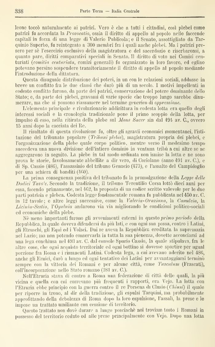 Questa disuguale distribuzione dei poteri, in un con le relazioni sociali, addusse in breve un conflitto fra le due classi che durò più di un secolo. 1 motivi impellenti in codesto conflitto furono, da parte dei patrizi, conservazione del potere dominante dello Stato; e, da parte dei plebei, gravami di varie specie che troppo lungo sarebbe dinu-merare, ma che si possono riassumere nel termine generico di oppressione.