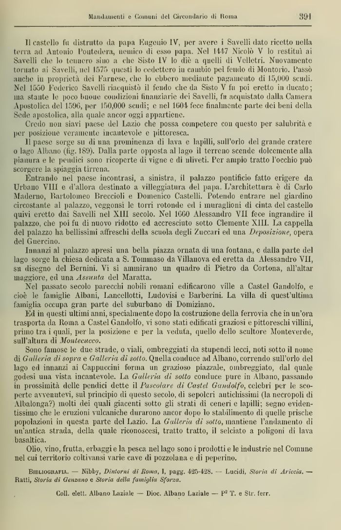 Bibliografia. — Nibby, Dintorni di Roma, I, pagg. 4-25-428. — Lucidi, Storia di Ariccia. — Ratti, Storia di Gemano e Storia della famiglia Sforza.