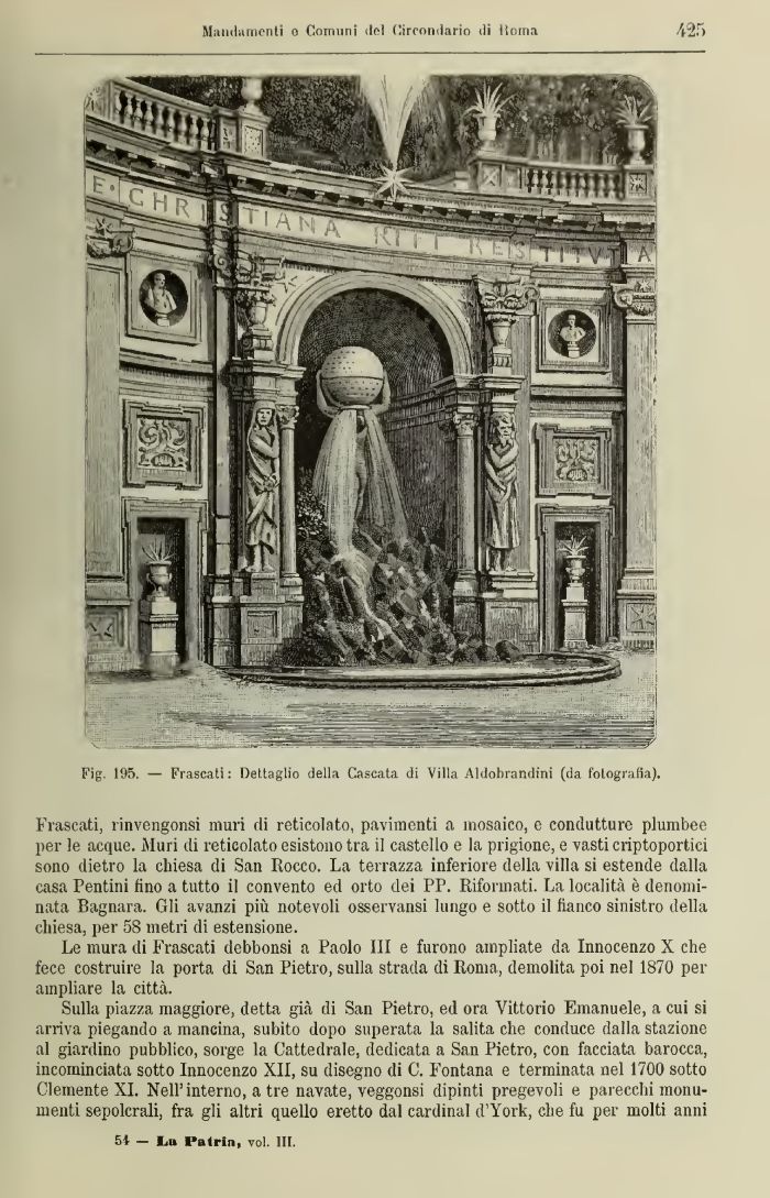 Fig. 195. — Frascati: Dettaglio della Cascata di Villa Aldobrandini (da fotografìa).