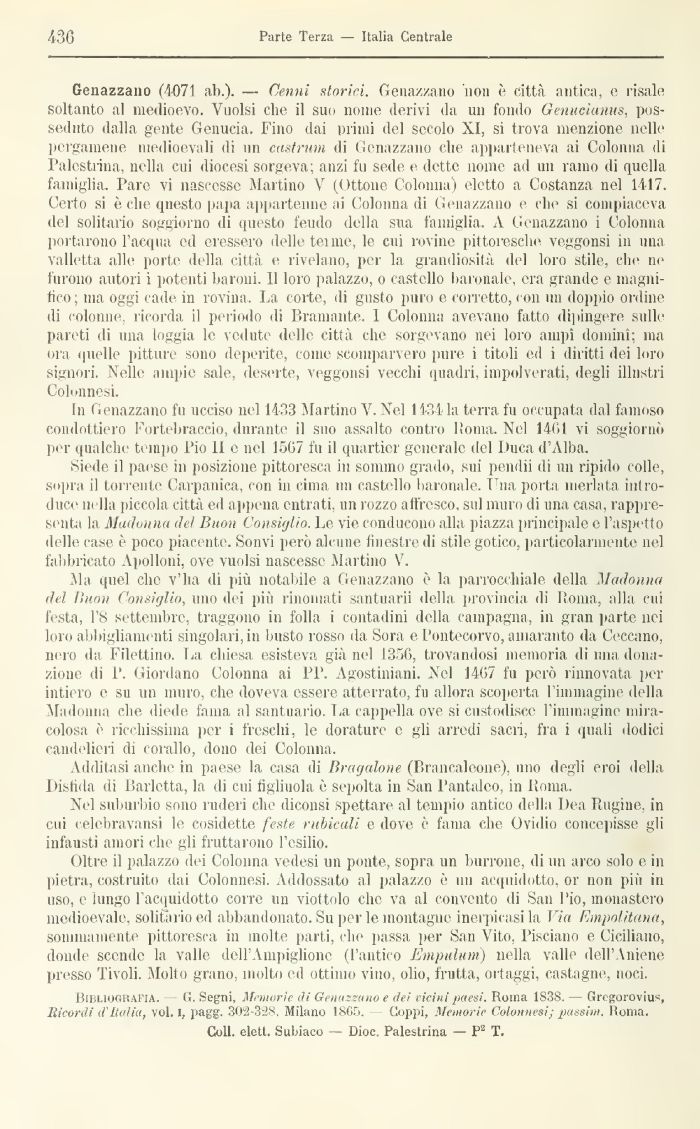 Bibliografia. — g. Segni, Memorie di Gemtszuno e dei vicini paesi. Roma 1838. — Gregorovius, Iìicordi d'Italici, voi. I, pagg. 302-328. Milano 18G5. — Coppi, Memoi-ie Colonnesi; passini. Roma.