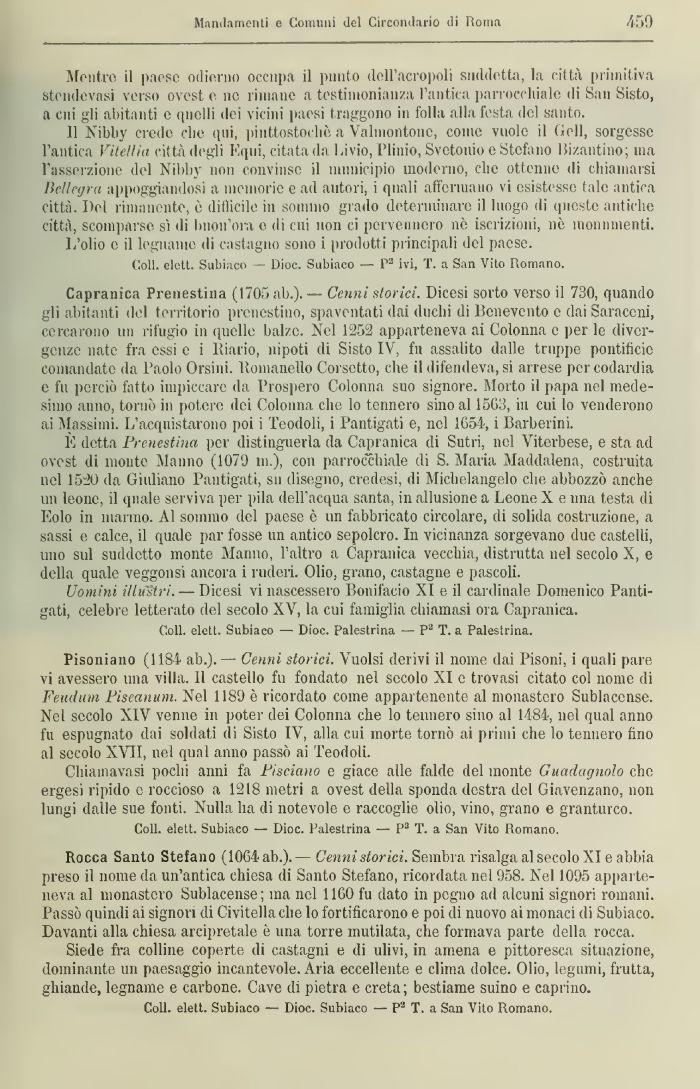 Coli, elett. Subiaco — Dioc, Palestrina — P2 T. a San Vito Romano.