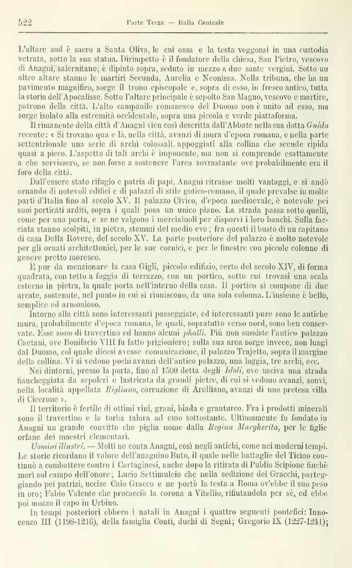 In tempi posteriori ebbero i natali in Anagni i quattro seguenti pontefici: Innocenzo 111 (110S-121G), della famiglia Conti, duchi di Segni; Gregorio IX (1227-1241);