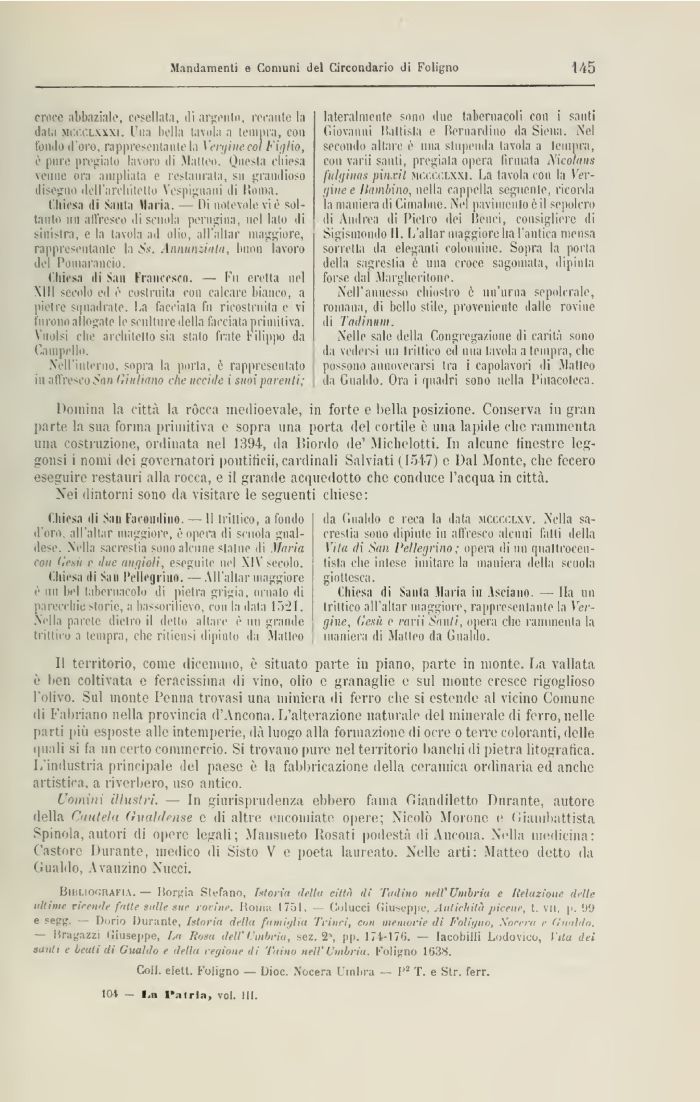 Bibliografia. — Borgia Stefano, Mòrta tletta città ili Tadino ut-li'Umbria e Relazione, dette ultime rieende fatte sulle sue ren ine. Hoioii 1751. - Colucci Giuseppe, Antichità picene, t. \ II, ji, 'J'J e sep<„'. Dorio Durante, Istoria delia fttmiglta Trinci, con memorie di Foliytwt ,SW» e (Inalilo. — Bradazzi Giuseppe, Im Rosa dell' t mbi-iu, sez. 2\ [>[>. 174-178. — laeobilli Lodovico, l'ila dei santi e beati di Gualdo e detta regione ili 'laino nell'Umbria, t'oliano 1838.